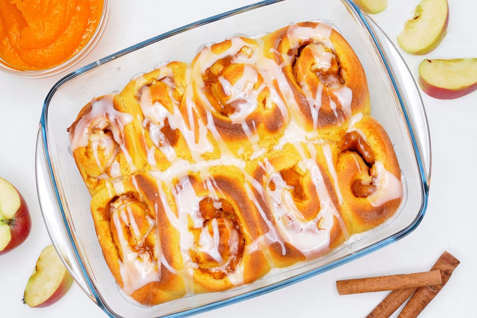 Kürbis-Zimt Schnecken mit Apfelfüllung