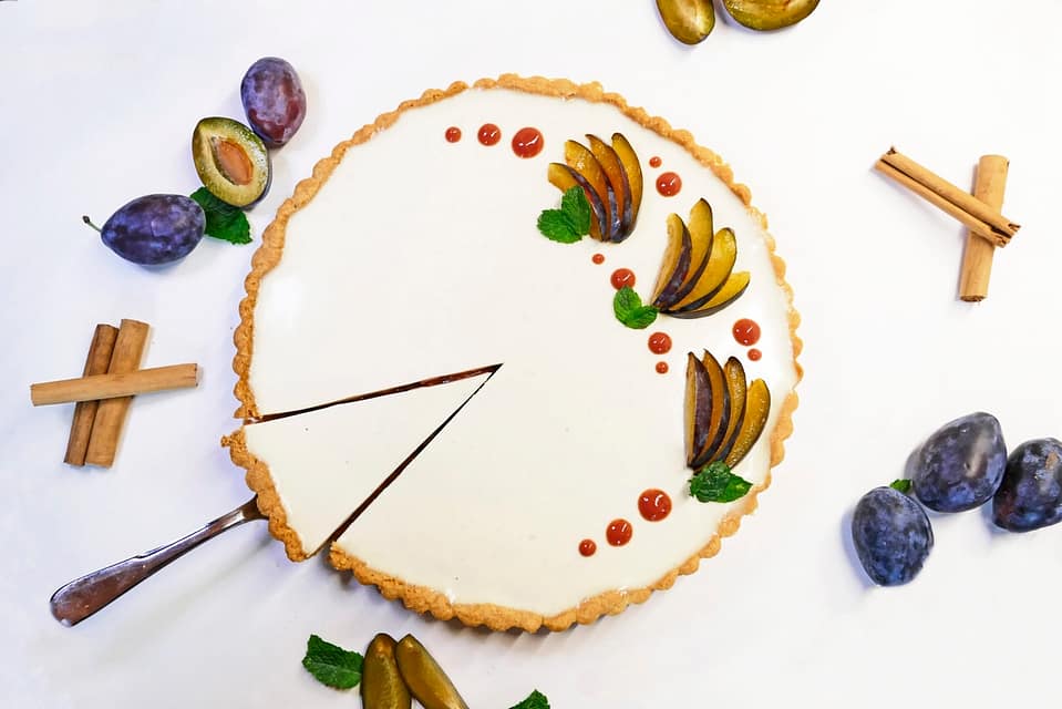 Es ist Pflaumenzeit und ich habe noch keinen Pflaumenkuchen gebacken. Das musste natürlich direkt nachgeholt werden und zwar diesmal als Tarte. Die Pflaumen habe ich zu einem leckeren Pflaumen-Kompott verarbeitet zusammen mit etwas Zimt. Schließlich ist jetzt Herbstzeit und da kann ich endlich offiziell wieder überall Zimt reinmachen und es passt zur Jahreszeit. Der Boden der Tarte ist ein leckerer klassischer Mürbeteig und oben drauf ist noch eine Vanillecreme. Wer keine Tarte Form hat, kann auch einfach eine normale runde Backform verwenden. Dann passt auch direkt mehr von dem Kompott und der Creme rein.